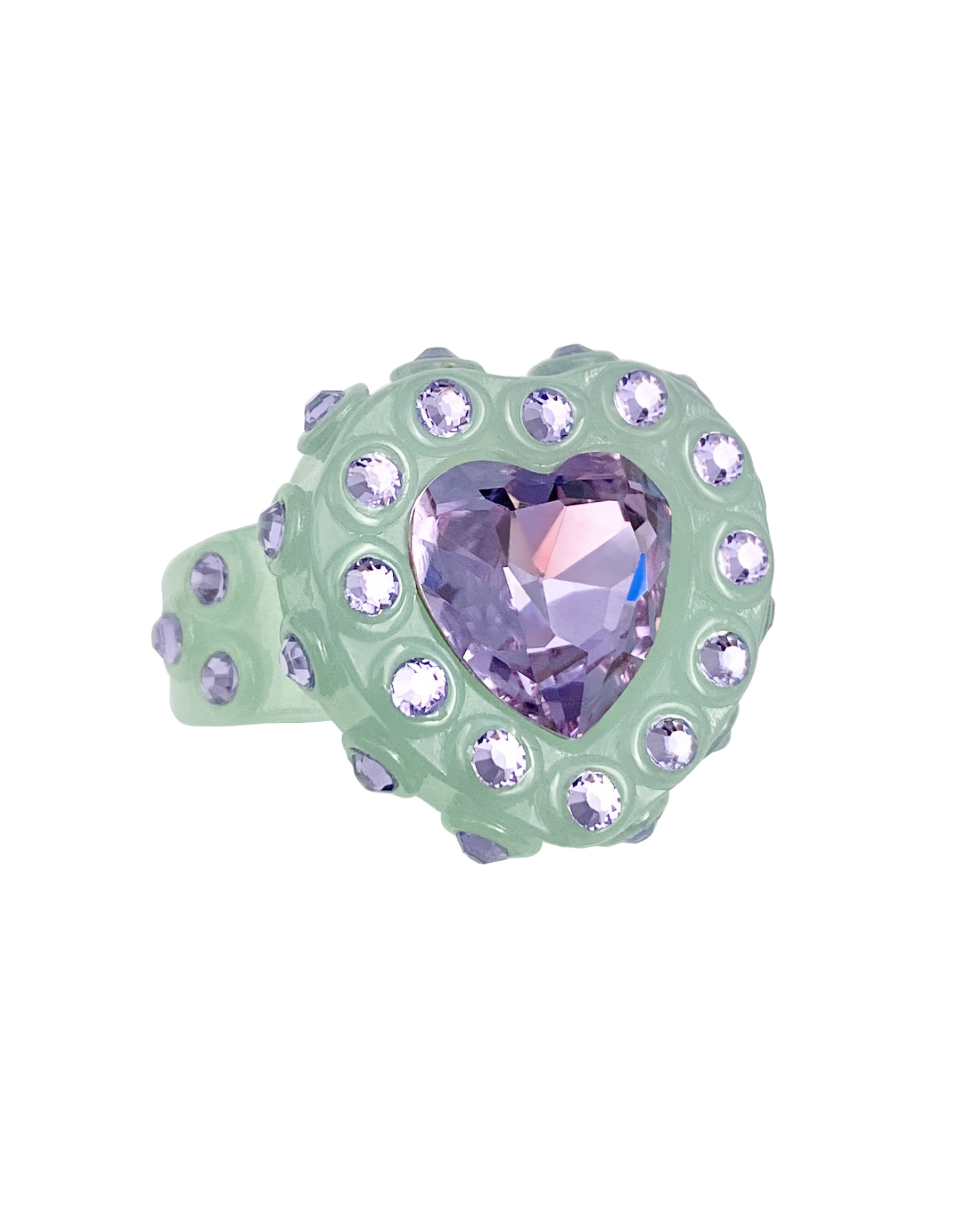 Soft lilac crystals in a seafoam-colored ring make for an unexpected but perfect color combination.