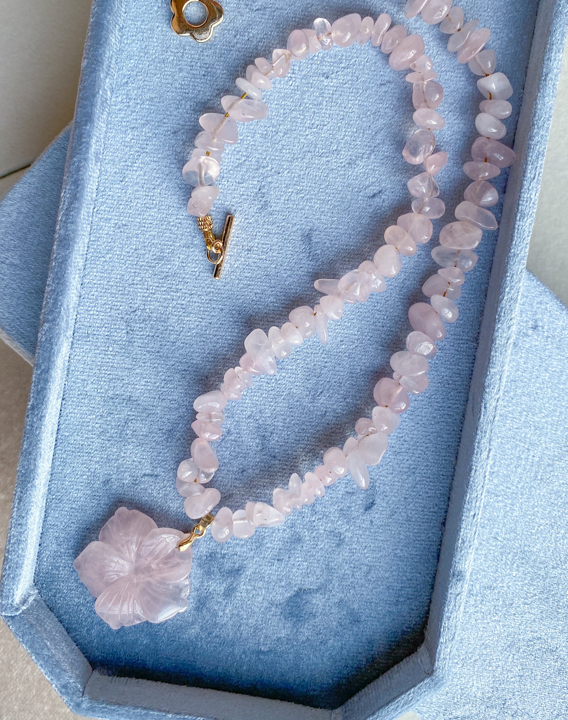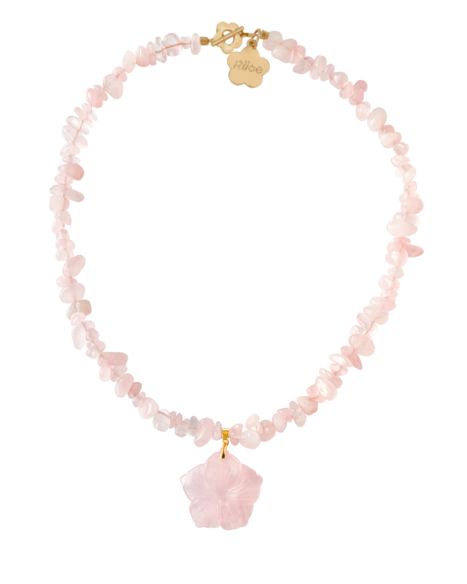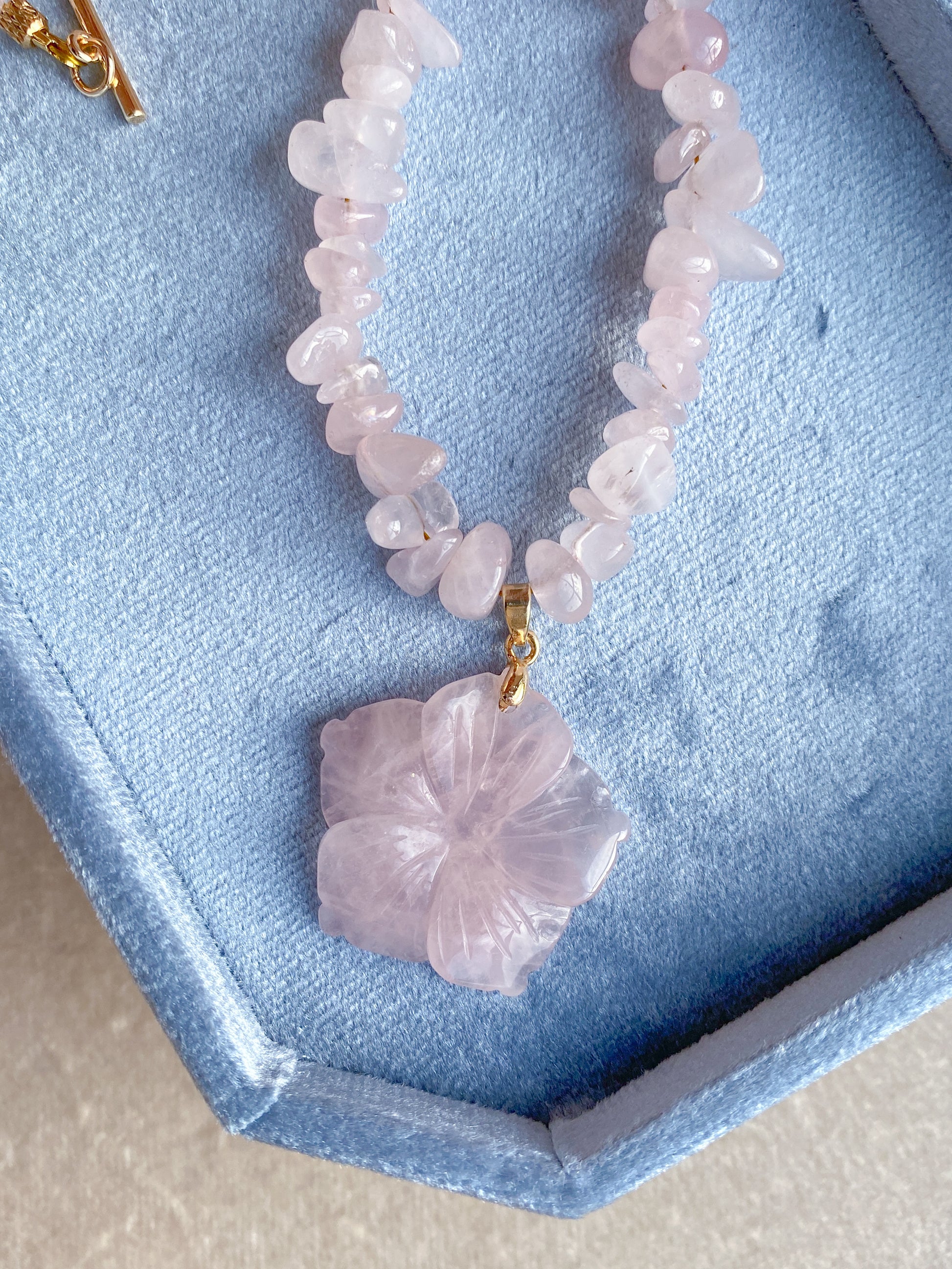 Pink quartz, plated findings.