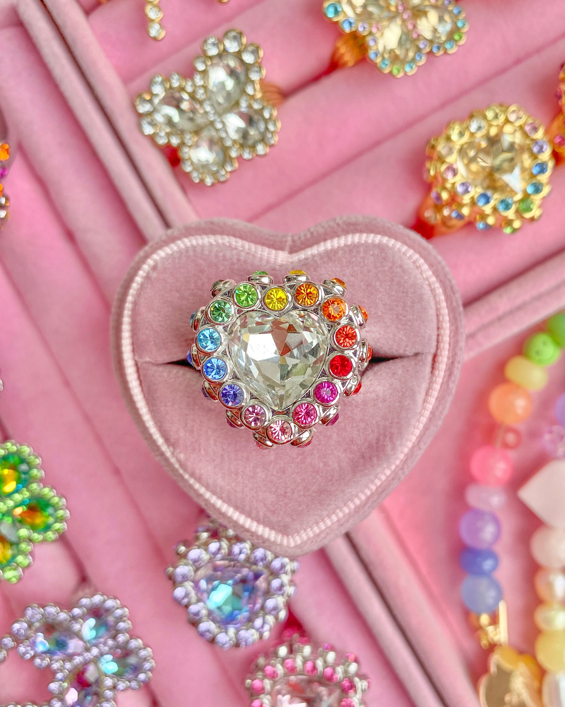 Covered in 34 little Czech crystals, with a show-stopping heart to top it off. Talk about a conversation-starting, show-stopping, statement-making ring. It really doesn't get much better than this.