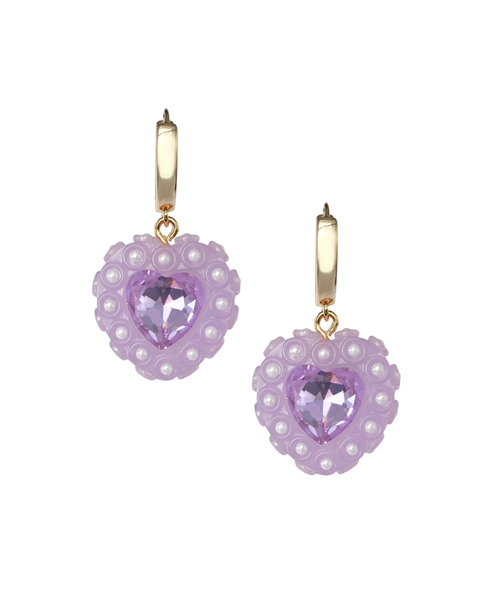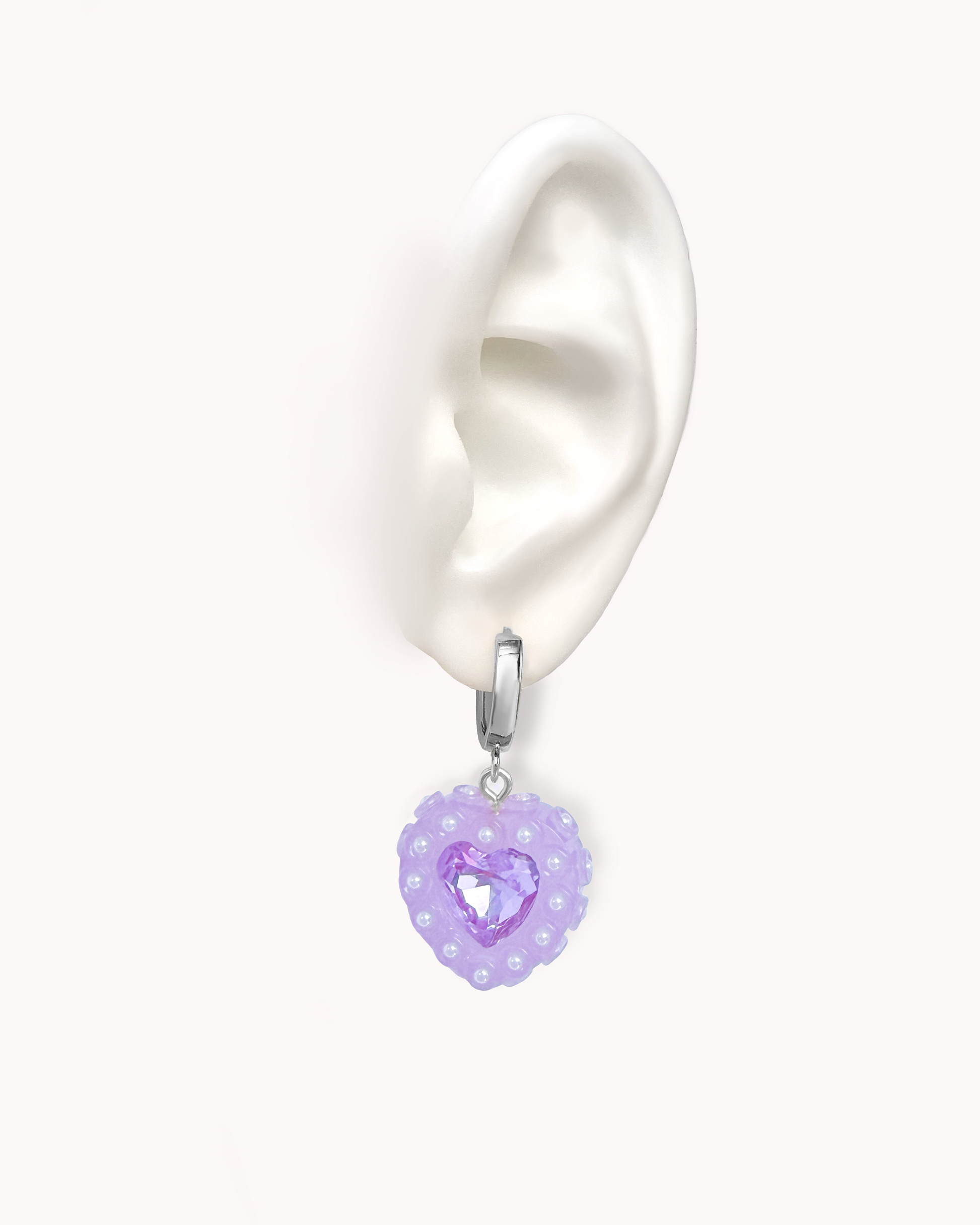 Treat yourself to a creamy, delicious sweet treat with a pair of Parfait earrings: an indulgent set of lilac hearts topped with little pearls all around.