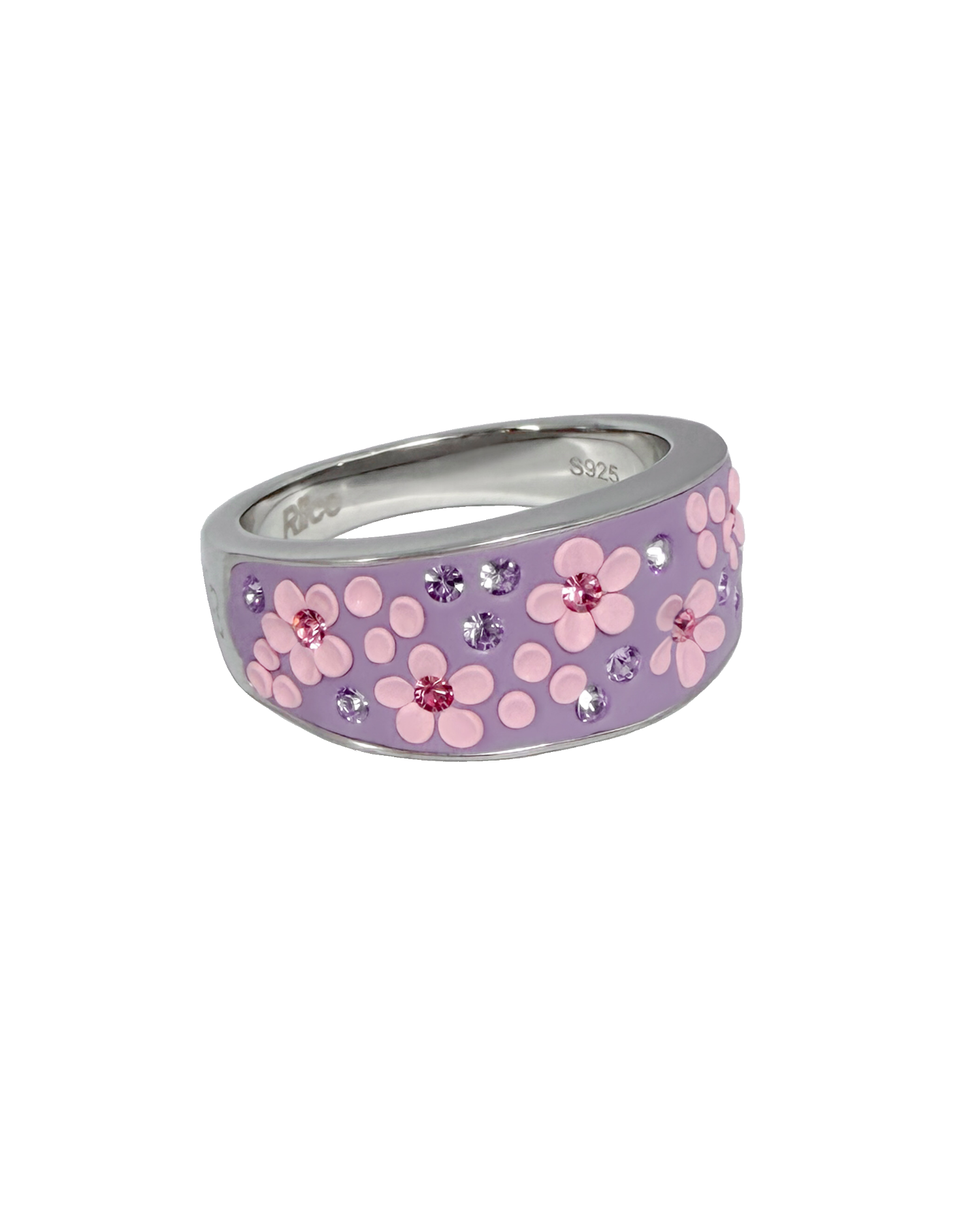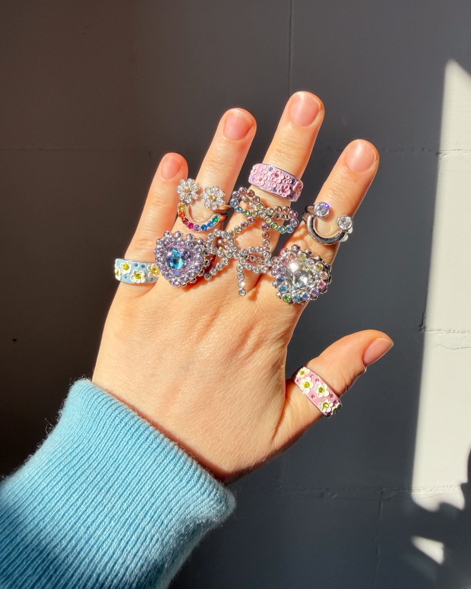 🌸 Celebrate spring with the Sakura ring: a sterling silver ring with delicately hand-sculpted cherry blossom flowers and sprinkles of soft-hued crystals.