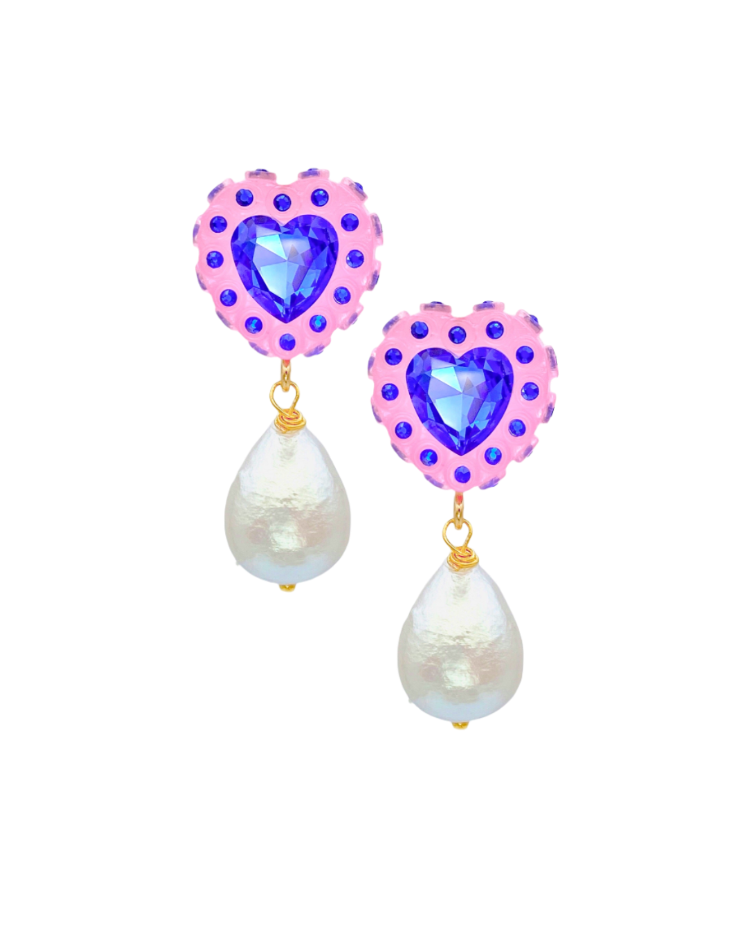 Gold-plated brass, stainless steel, acrylic, crystal, cotton pearl.