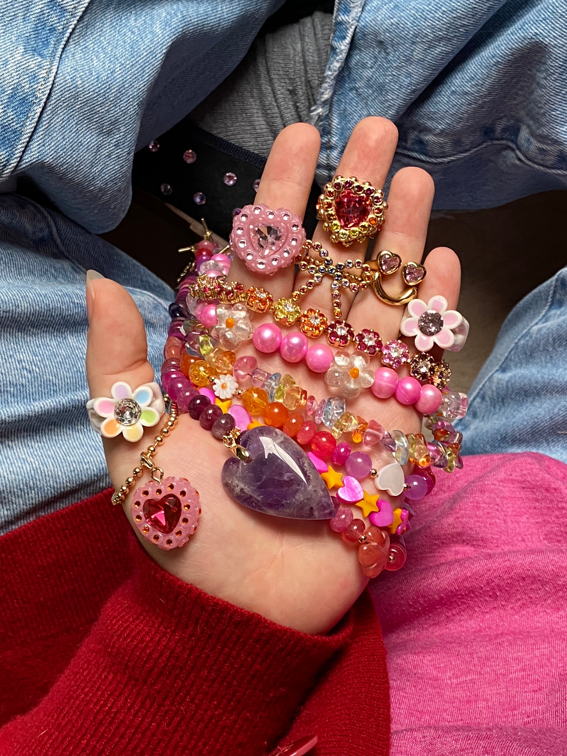 Made of carved gemstone beads in the most precious colors, the Adeline necklace is a statement necklace fit for royalty 👑