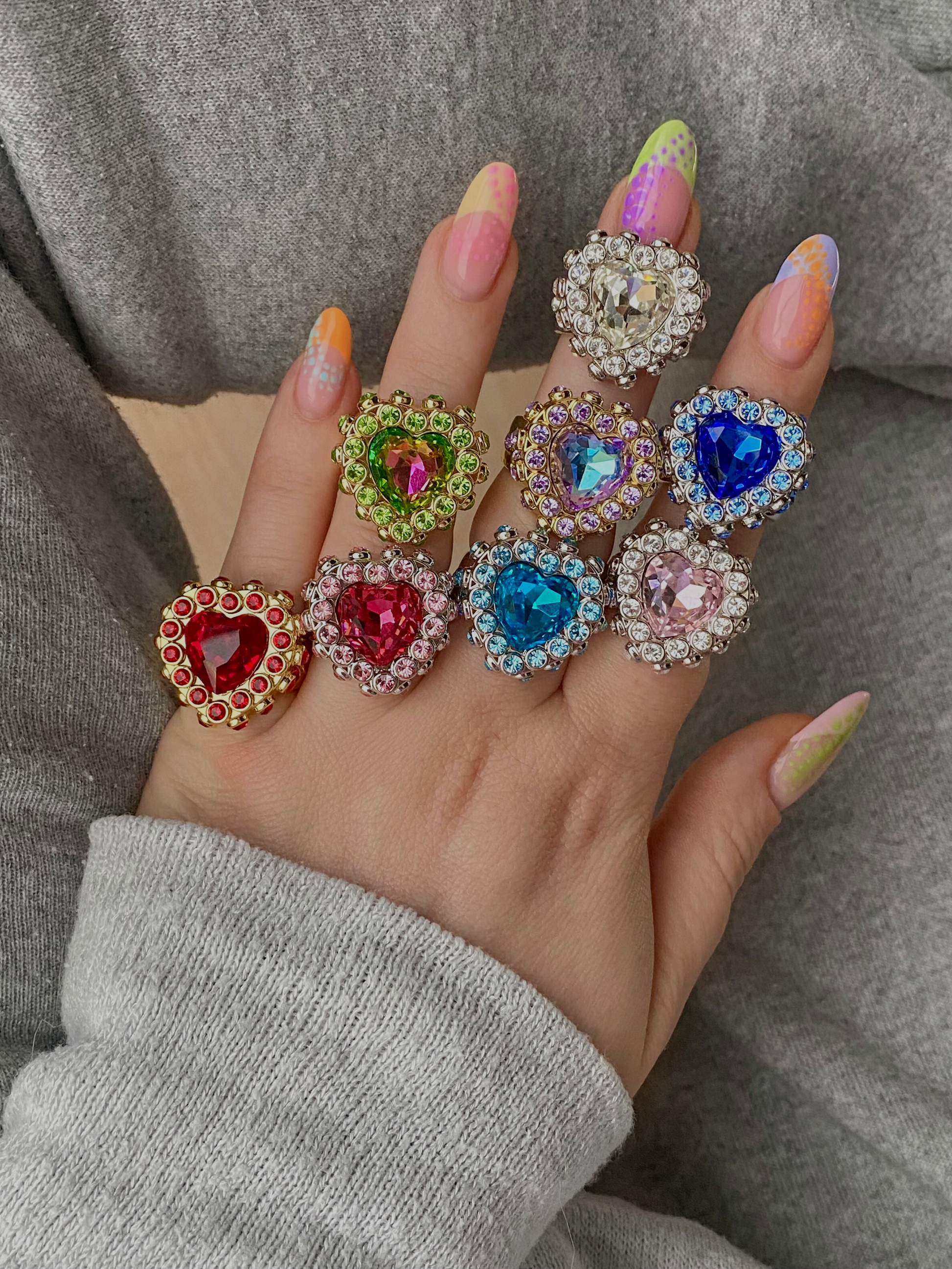 Covered in 34 little Czech crystals, with a show-stopping heart to top it off. Talk about a conversation-starting, show-stopping, statement-making ring. It really doesn't get much better than this.