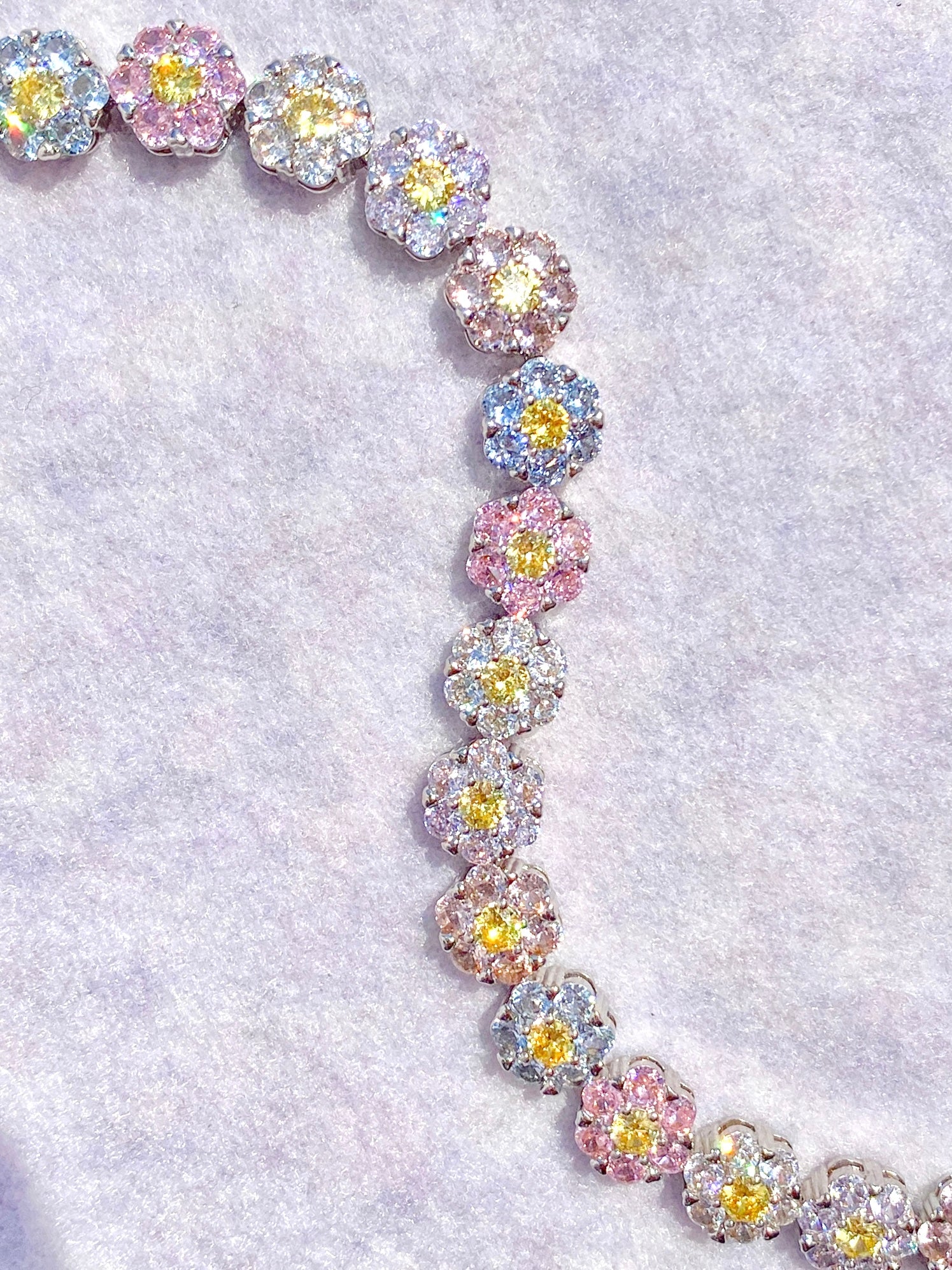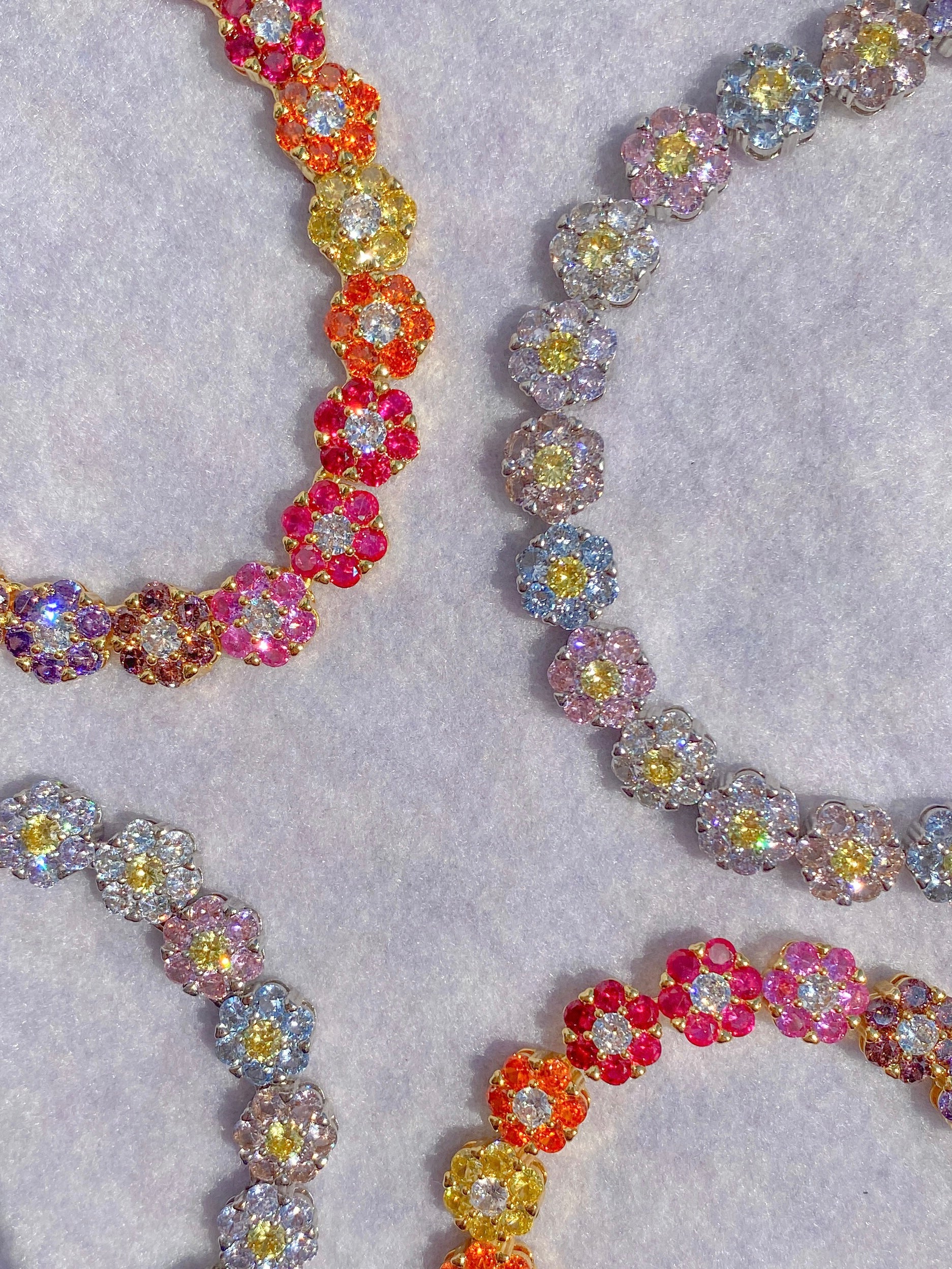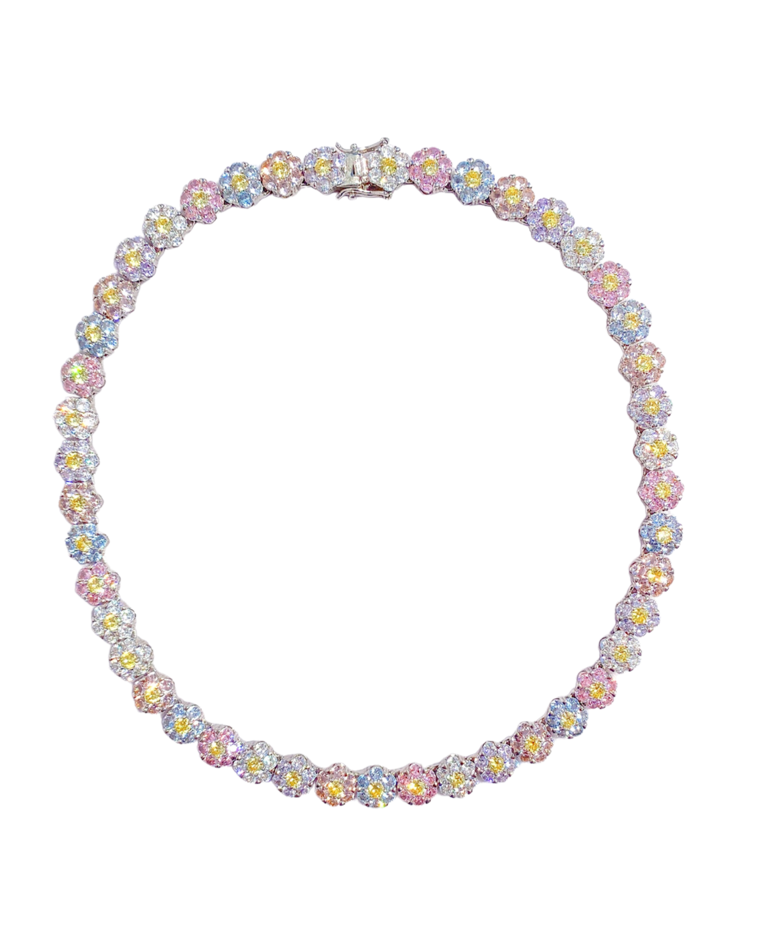 Get ready to dazzle with the Bouquet floral tennis necklace. This lineup of soft florals is so sparkly that it will make even the rainiest days feel bright.