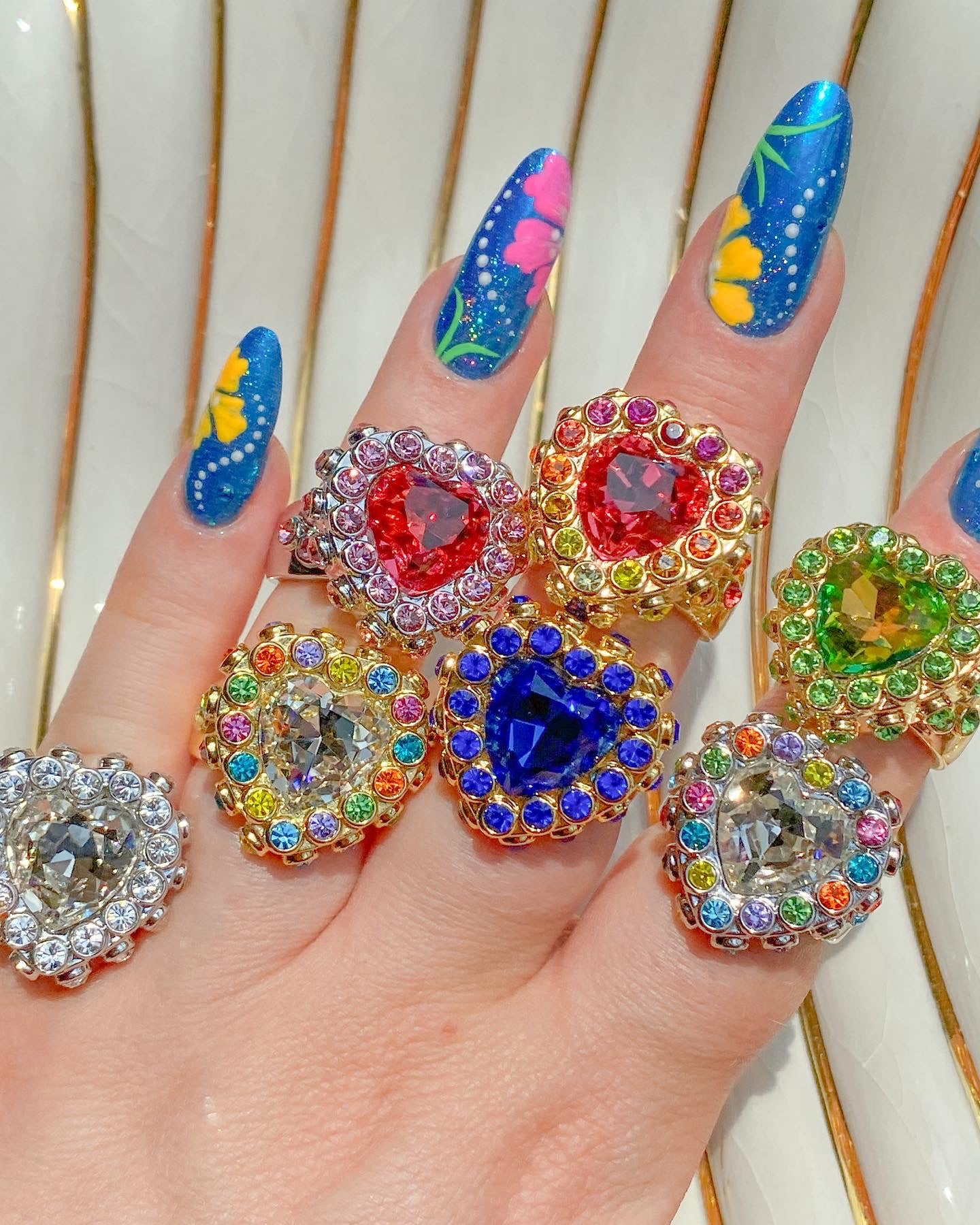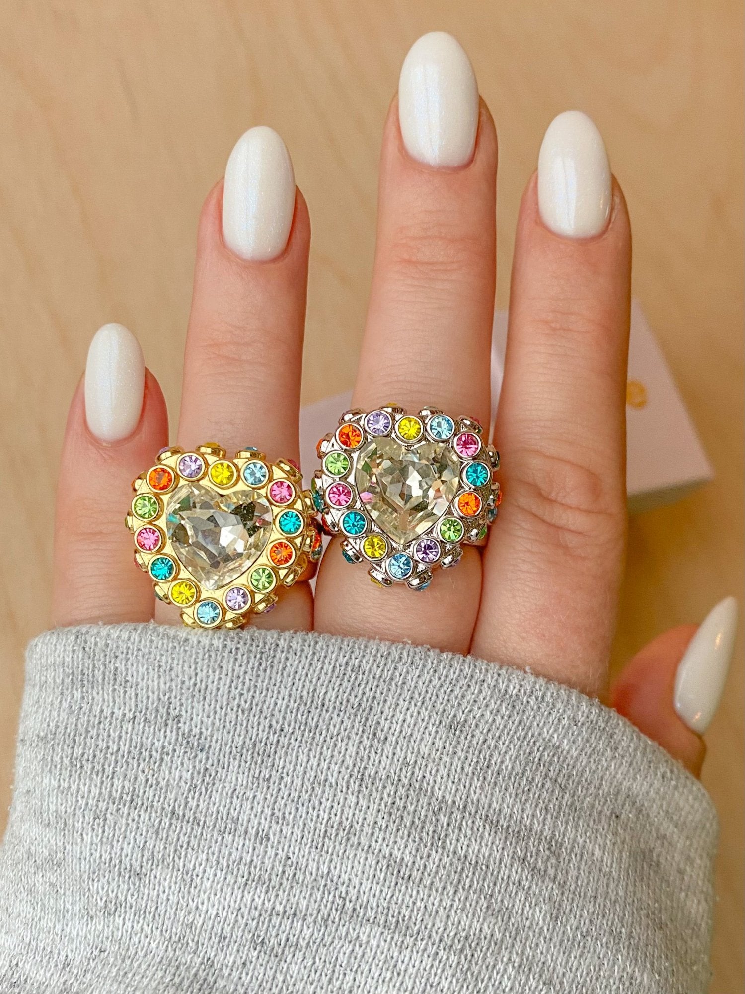 Covered in 34 little Czech crystals, with a show-stopping heart to top it off. Talk about a conversation-starting, show-stopping, statement-making ring. It really doesn't get much better than this.