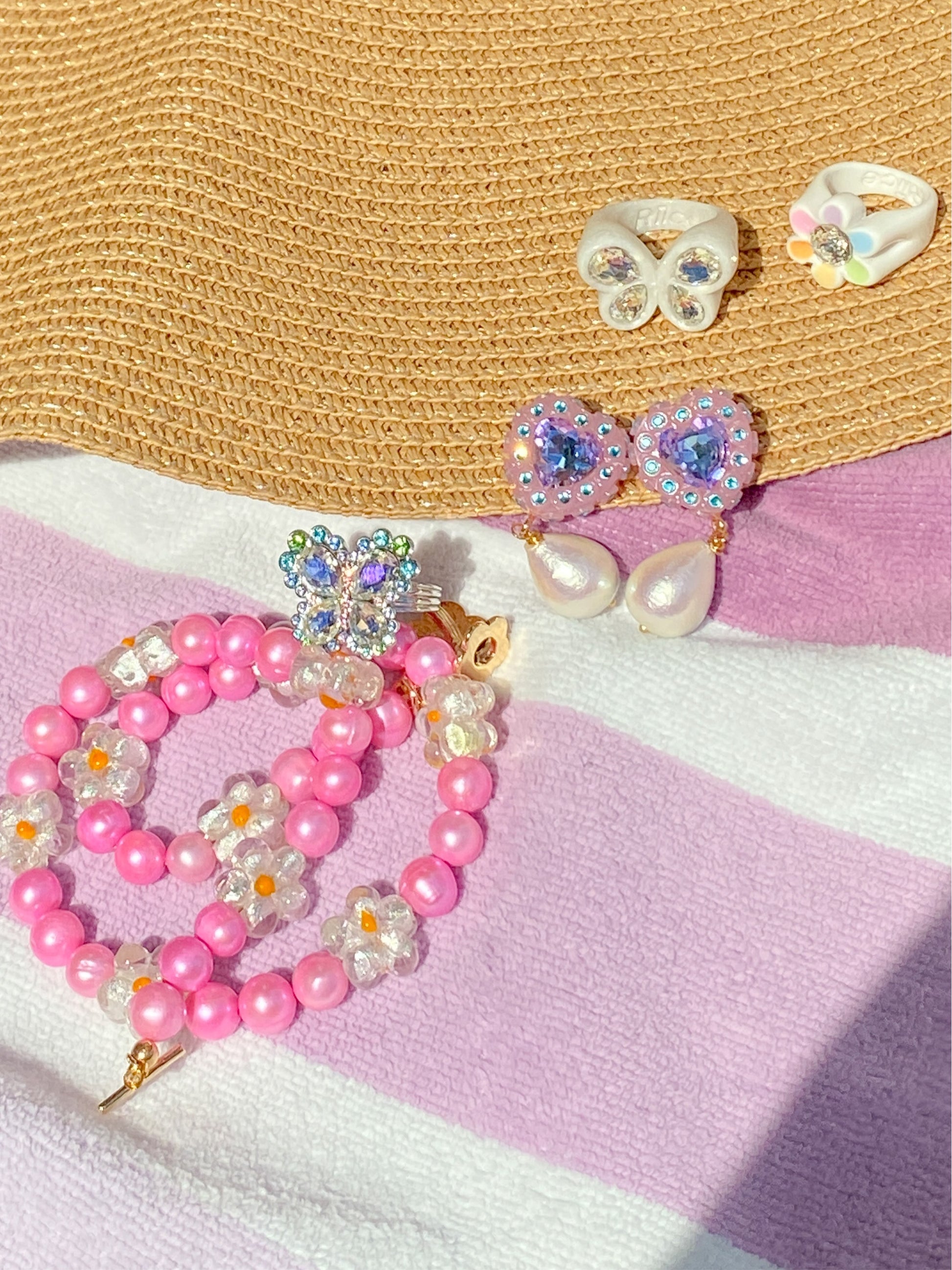 Sweetest pink and beachy blue, these earrings will transport you to Malibu