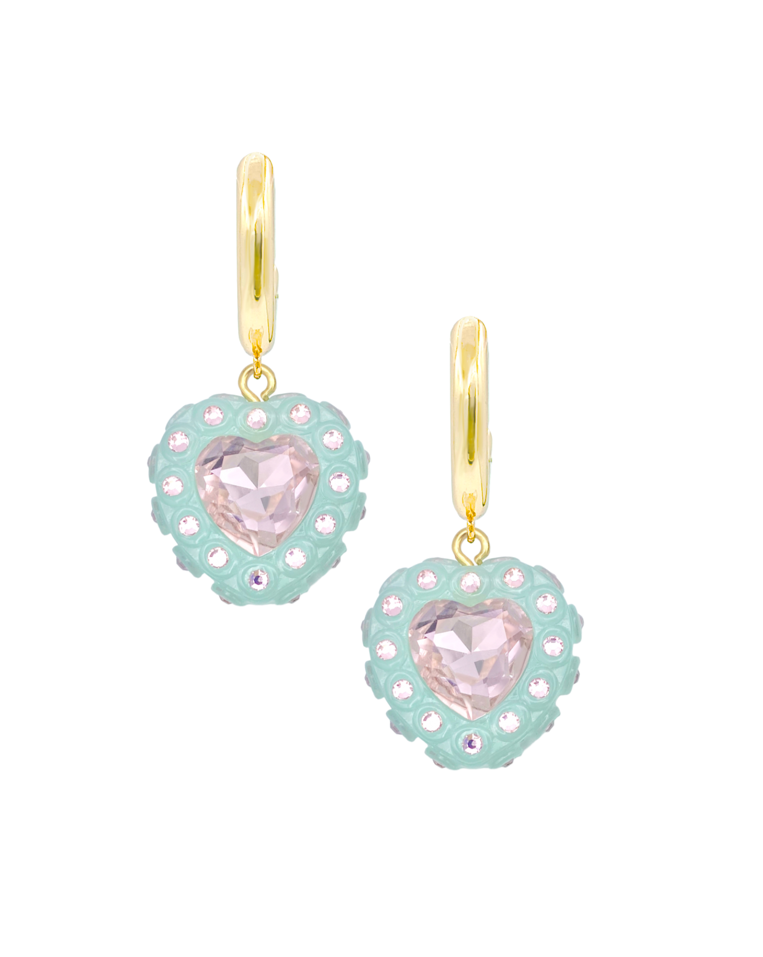 Soft pink crystals in a seafoam-colored heart make for an unexpected but perfect color combination.